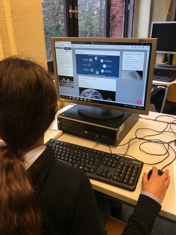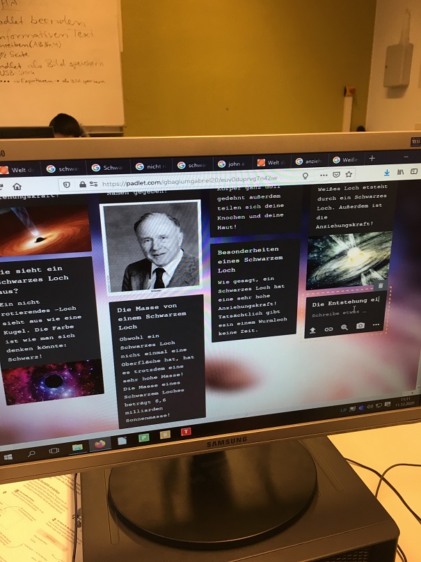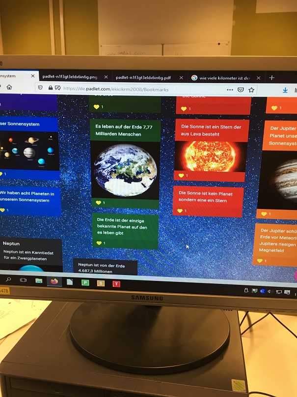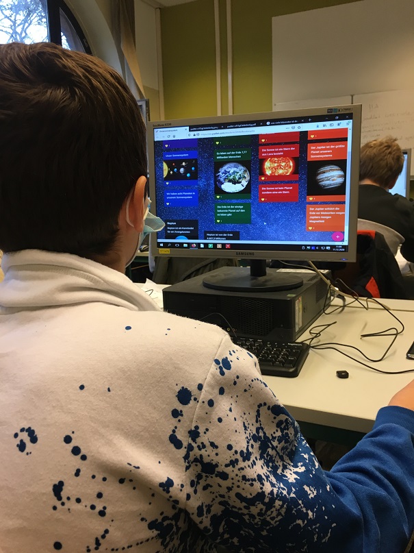 Die Siebten Klassen erstellen mit Padlets ihre kreativen Präsentationen zum Thema Weltall: