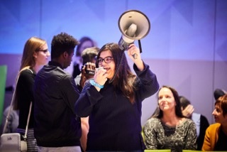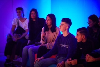 Am 02.10. führten dann die anderen Schüler*innen ihre Perfomance im passenden Ambiente des neueröffneten Futurium auf. Als Reporterteam mit kritischen Fragen im Gepäck wurden die Zuschauer befragt, während im Hintergrund Proteste tobten. Anschließend ging es in eine große Diskussionsrunde mit Fragen und Antworten. Ob diese zufriedenstellend waren…? Nun, wer weiß.