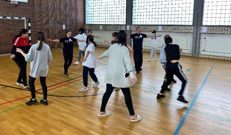 Die vier Mädchengruppen wurden dabei in zwei Workshops mit insgesamt 8 Stunden von den Trainer:innen Diana Radnai und Pascal Nagel von der Sportschule Choi in Neukölln geschult, unterwiesen und trainiert. Dabei zeigten sie „besonderes Einfühlungsvermögen, sie haben jedes Mädchen an ihrem Punkt abgeholt und geschafft mitzunehmen.“ (Frau Le Moal) Aber auch Pascal Nagel und Diana Radnai sind der Meinung, dass „sich die Mädchen unheimlich schnell und toll entwickelt und gezeigt haben, wie viel Kraft in ihnen steckt.“ Das sieht Damla ähnlich, sie habe sich nicht nur wohlgefühlt, sondern hat auch gelernt „mich zu wehren und Grenzen zu setzen.“ Ähnlich geht es Lara aus der Parallelklasse: „Ich habe mich gut gefühlt und Sachen aus der AG wiedererkannt. Lauter zu werden war eine Herausforderung, aber man konnte mal richtig alles rauslassen.“ Mit den Adjektiven „cool, krass, schön“ und „informativ, stärkend, effizient“ beschreiben beide Schülerinnen den Kurs.