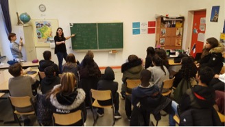 Am 30.01.2018 hatten wir, die Wahlpflichtklasse 8 in Französisch das große Glück das France Mobil bei uns an der Schule am Berlinickeplatz empfangen zu dürfen. Zum France Mobil gehören Irène und Cyrelle. Beides sind muttersprachliche Französinnen, daher fand die ganze Unterrichtsstunde auf Französisch statt.