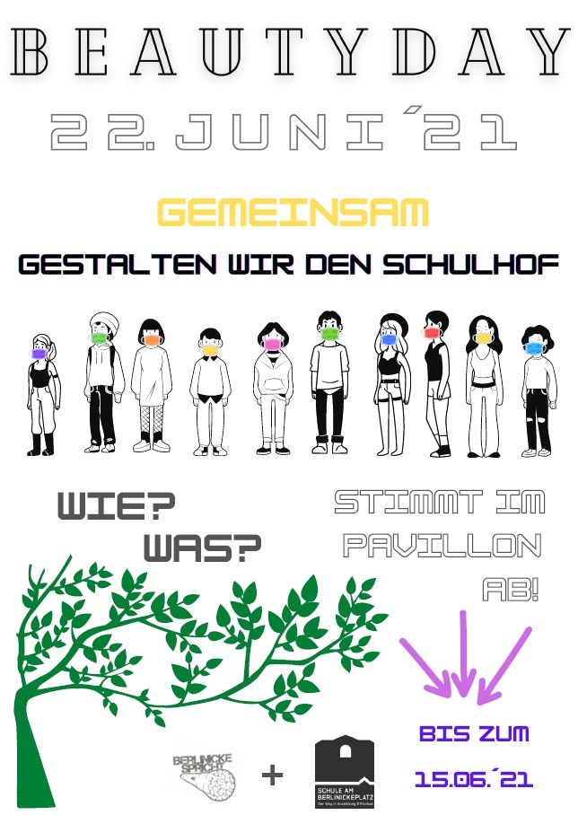 Da das Sportfest aufgrund von Corona dieses Jahr leider ausfallen muss, wird der Beautytag auf zwei Tage ausgedehnt und findet am 21.06. und 22.06. statt. Genug Zeit also, sich bei diversen Projekten einzubringen. Den Flyer gibt es hier auch noch einmal in groß.
